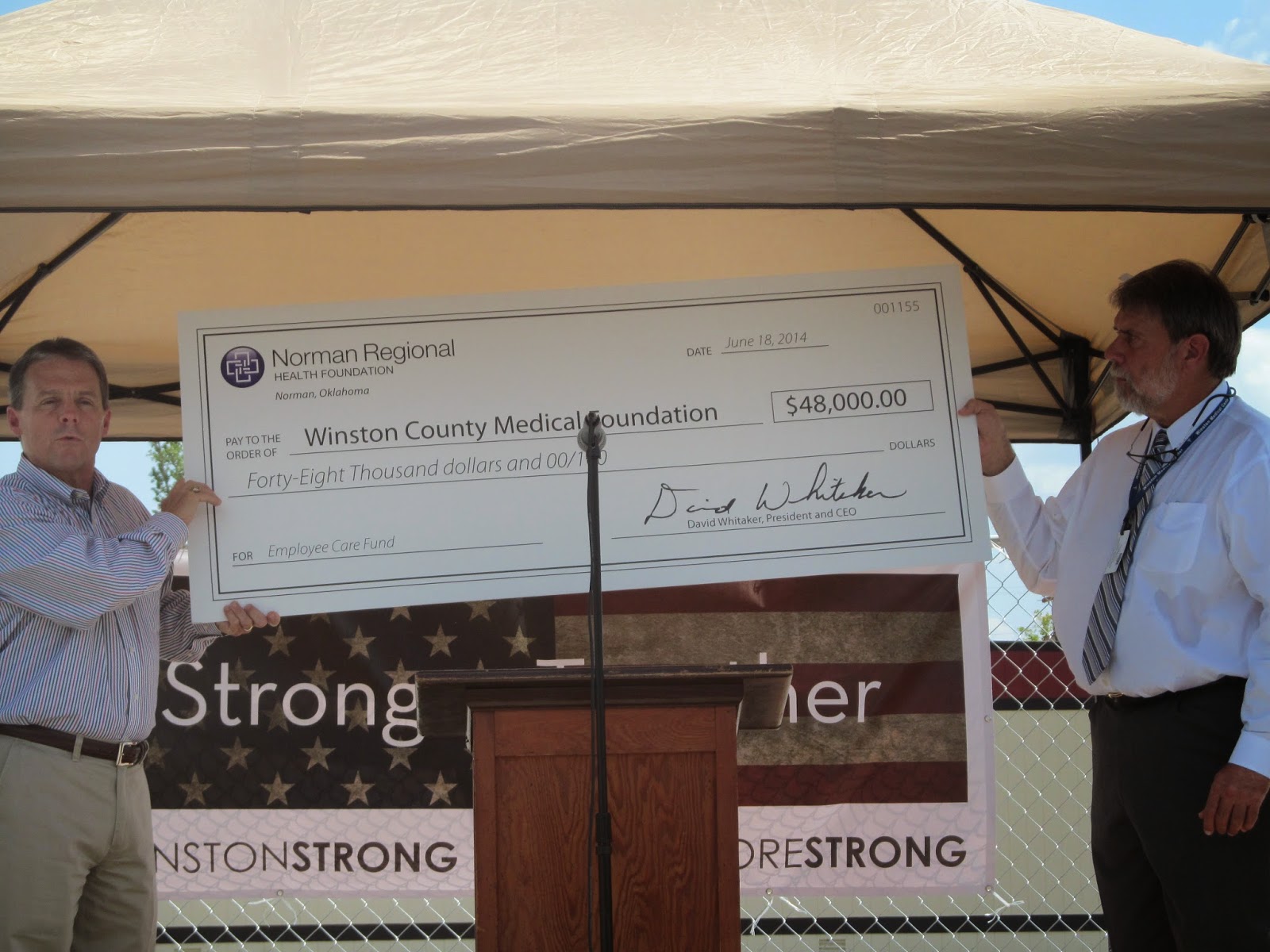 “Thank you will never be enough for this huge act of kindness from Norman Regional Health Systems. The appreciation felt, by so many not only for the monetary gift but also the emotional support and message of hope brought by this team, can not be put into words. May God bless each of you at NRHS and again, thank you from the bottom of our hearts,” said Lacey Vowell, an employee of Winston Medical Center.
